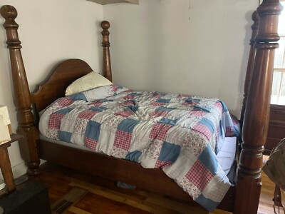 Crawly Affiche Bed. Paul Bunyan mode cannon ball poster queen size bed with wood side track included. The short rails in pictures are for brandish and ... more not included. Very nice condition and very heavy duty built. Measures approximately 72 inches tall. Selling in every bit plant condition as always. Can be viewed and picked up at 250 Antique Mall. 9043 State Road 250 SE. Dennison, Ohio 44621. Open up daily 10-5 pm. Closed on Wednesdays. Buyer must option item upwardly inside 3 weeks, email for pickup appointment. If you desire a aircraft quote contact plycongroup.com or tscmoving.com.