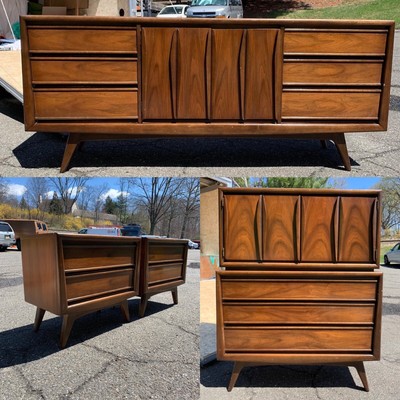 mid century mod bedroom set dressers nightstands set Vintage Furniture. Stunning set! Alpine/long dresser pair of nightstands and mirror not shownNJ ... more pick up shipping can exist arranged for a feeSome dings/scratches apply wearOverall good solid wood condition Can exist separated message me