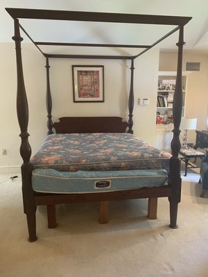 John Witticomb King Bedchamber Gear up. First-class shape, John Wddticomb is known for high quality solid cherry furniture. These take the original manus paintings ... more on them. The bed can be a four poster as shown or I accept all the fittings to brand information technology in to a CANOPY! Shipping will be set upward and paid for by you lot and I will facilitate your shipper loading etc..
